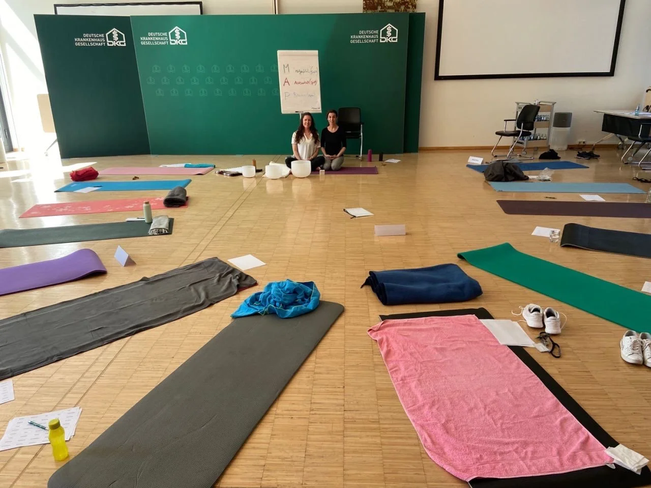 Sound bath for stress reduction at DKG (Deutsche Krankenhaus Gesellschaft) Berlin in May 2023.